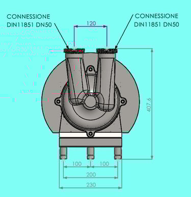 Dimensionali delle pompe autoadescanti con le seguenti potenze del motore elettrico:
